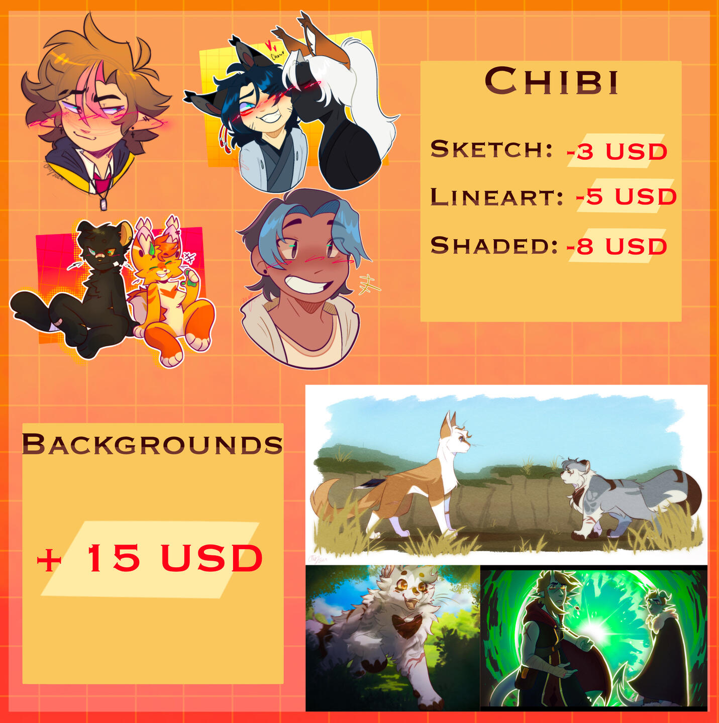 - I reserve the right to post completed commissions on my social media, clients will be tagged with respective works