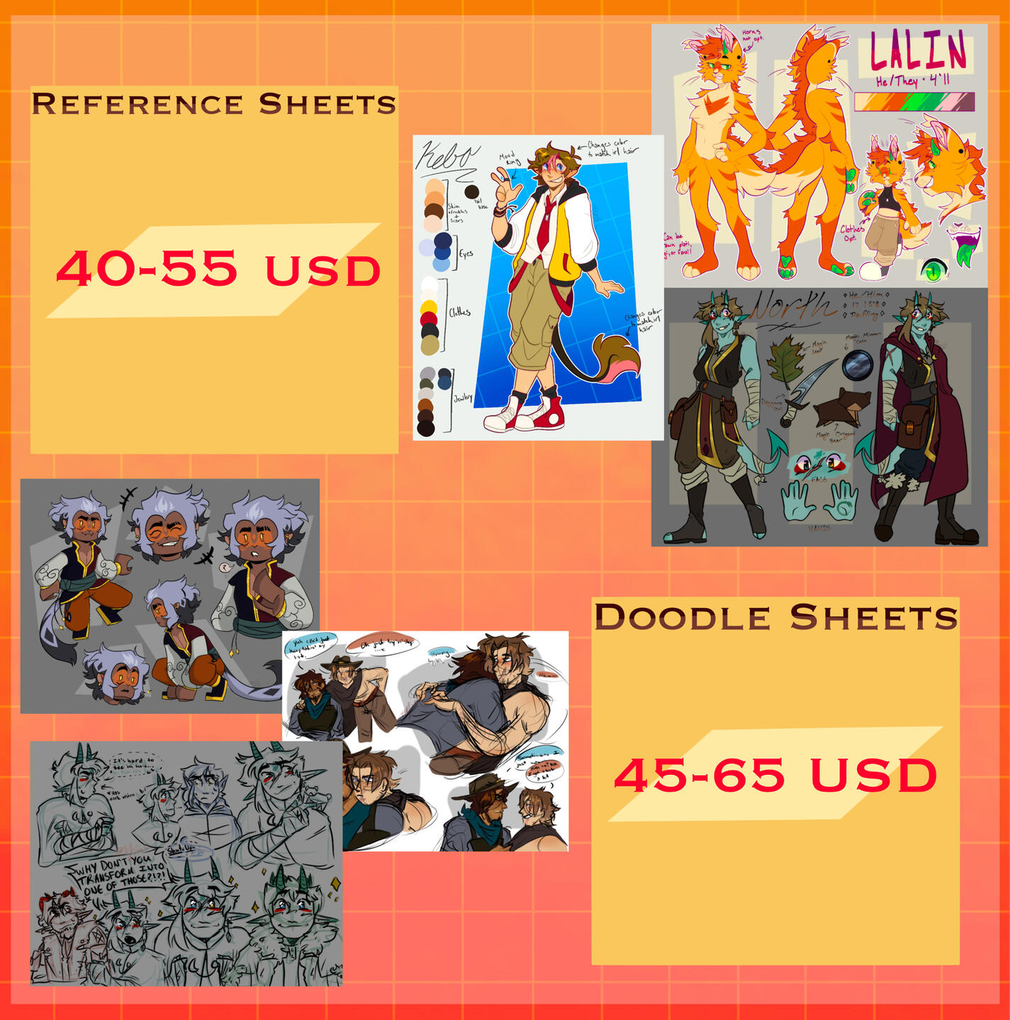 - A clear reference image(s) of the character (If you want a mood board custom there will be an extra fee)